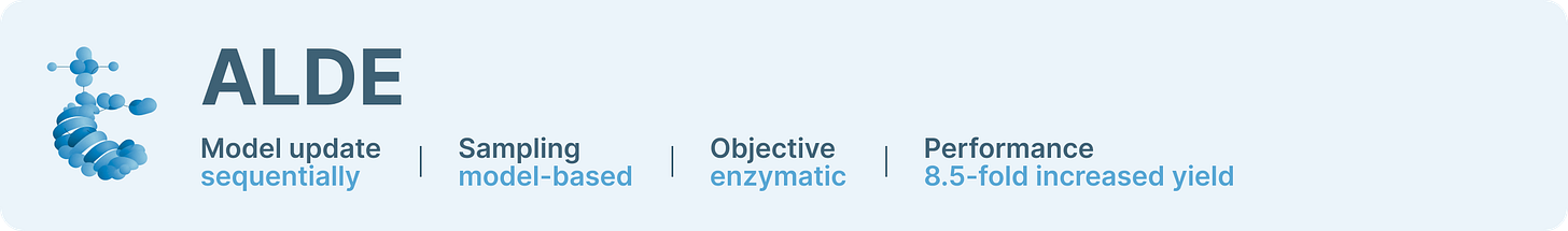 Within their optimization framework ALDE (Active Learning-assisted Directed Evolution), Yang and colleagues compared active learning loops with Bayesian methods (acquisition functions, uncertainty-aware surrogates) with simple machine learning-assisted directed evolution.