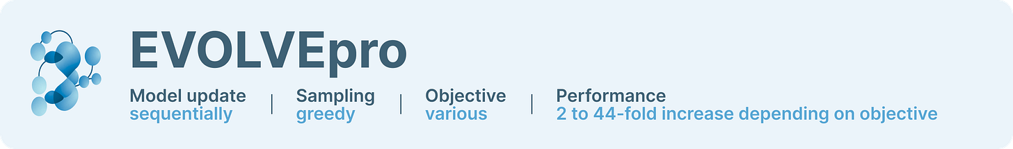 The code is accessible here and is easy to understand if you are in the field. We think EVOLVEpro, accompanied by AdaLead and PEX (all of them sequentially optimized models with greedy selection), will become a the baseline to beat for any optimization endeavour.